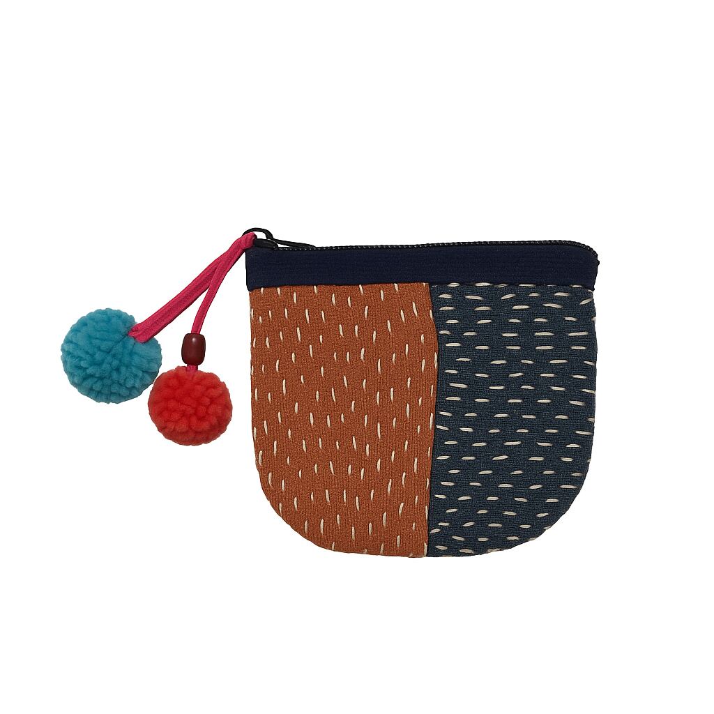 ふかふかと手にしっくりくる小ぶりなサイズ感。ステッチや編み込みが可愛いポーチです。