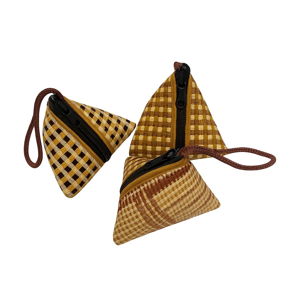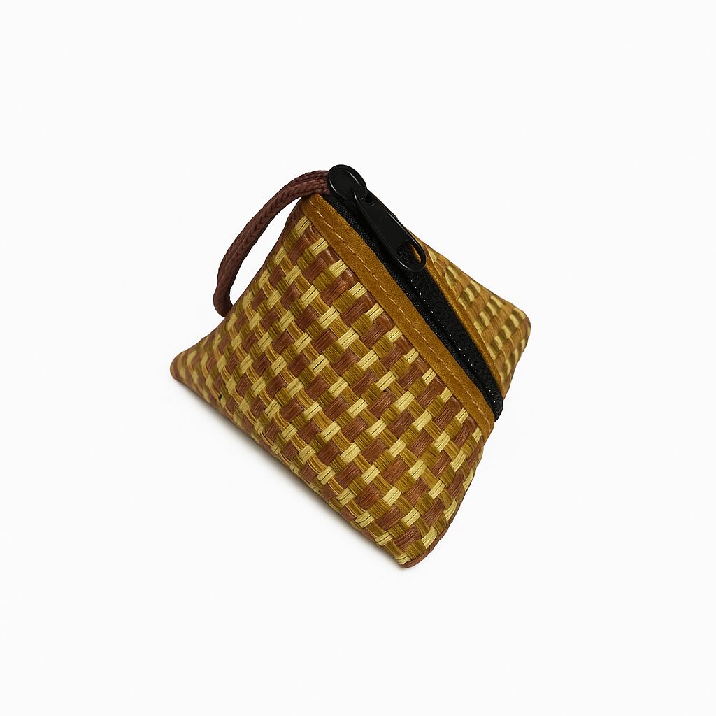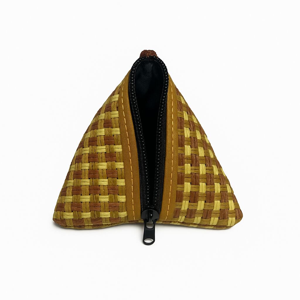 ふかふかと手にしっくりくる小ぶりなサイズ感。ストロー素材の独特な風合いが楽しめる三角形のポーチです。
