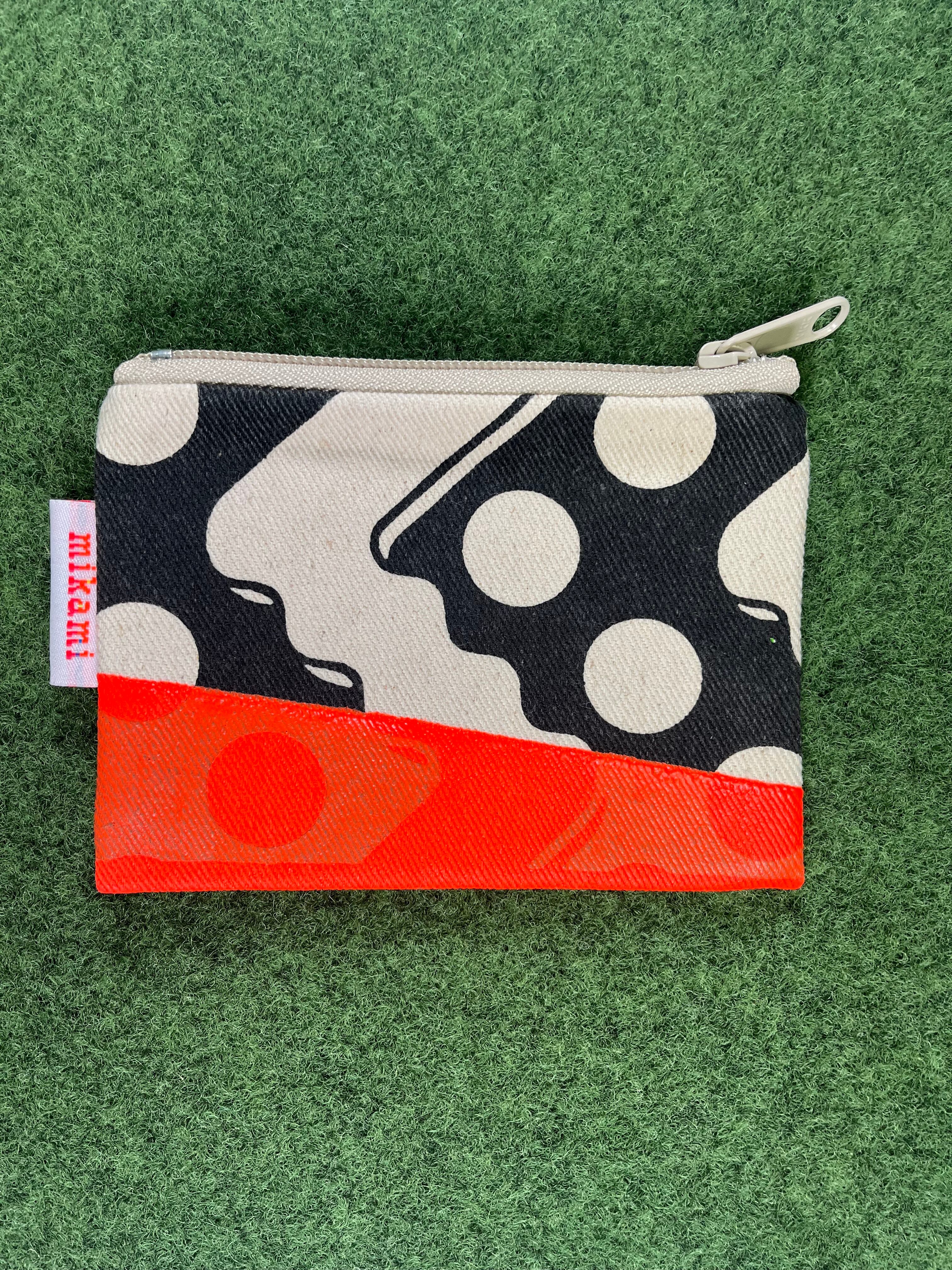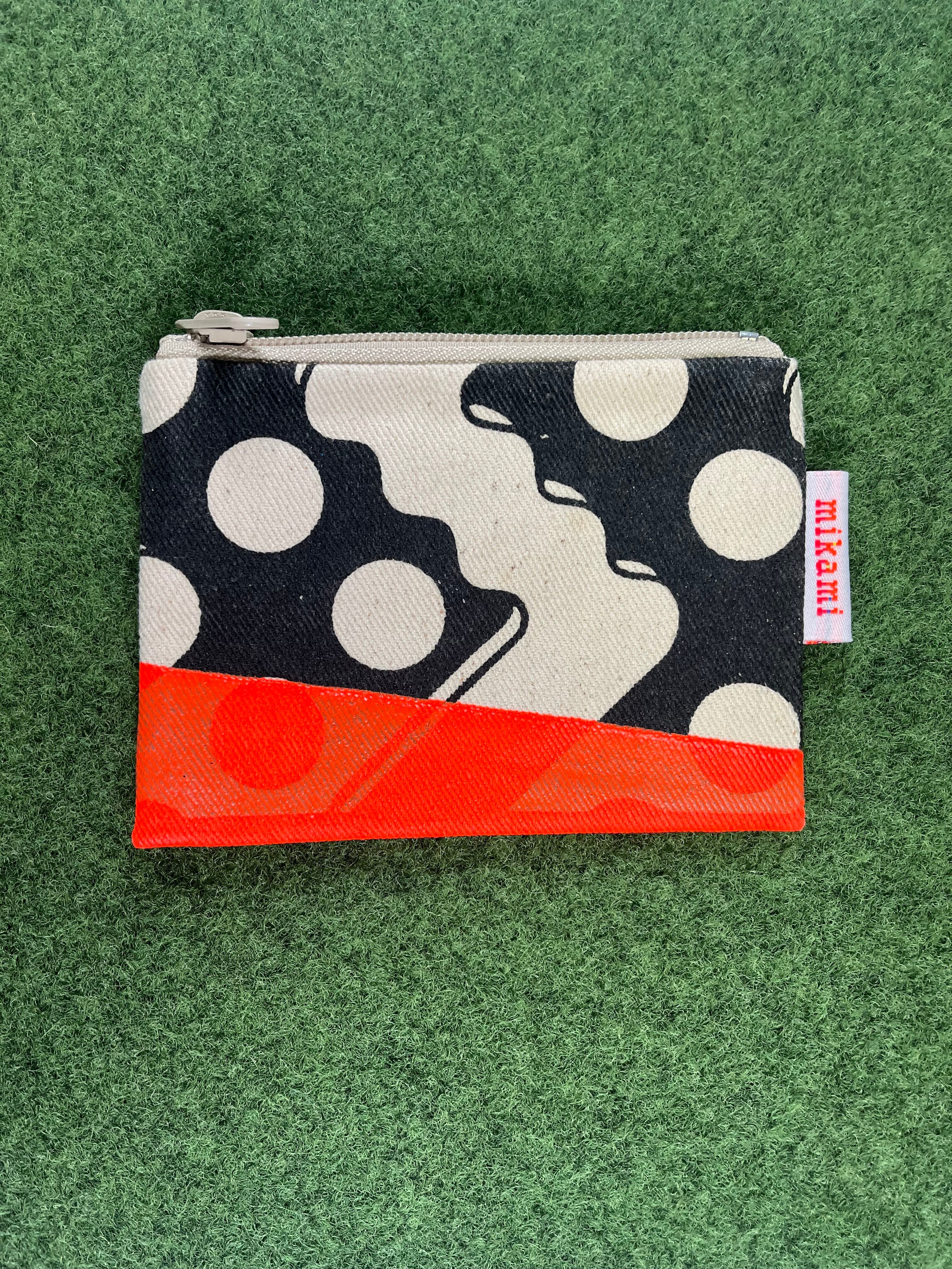 ネオンカラーが映えるオシャレなポーチ。幾何学模様など個性的なプリントがパッと目を引きます。しっかりした綿素材なので耐久性も◎。