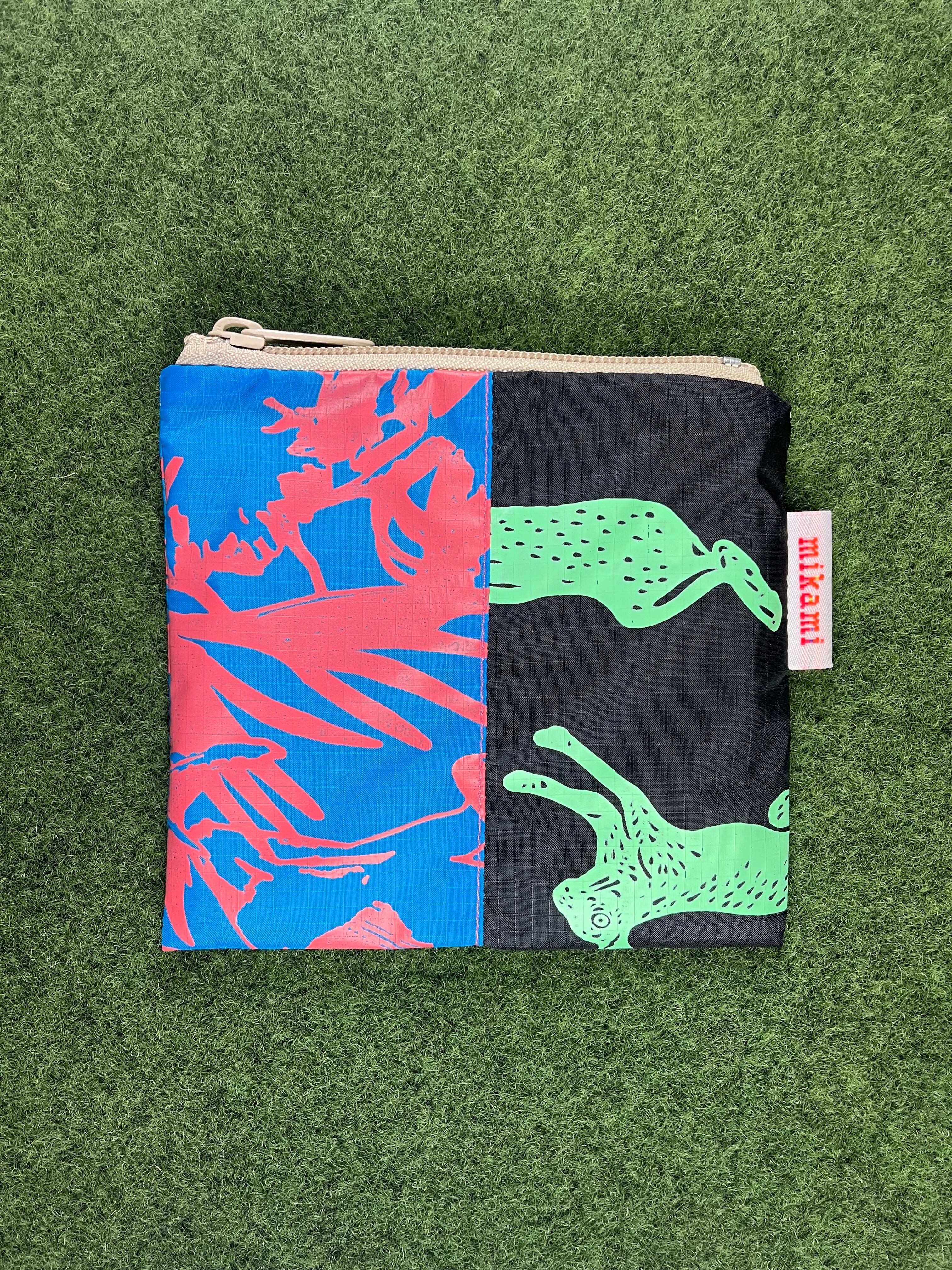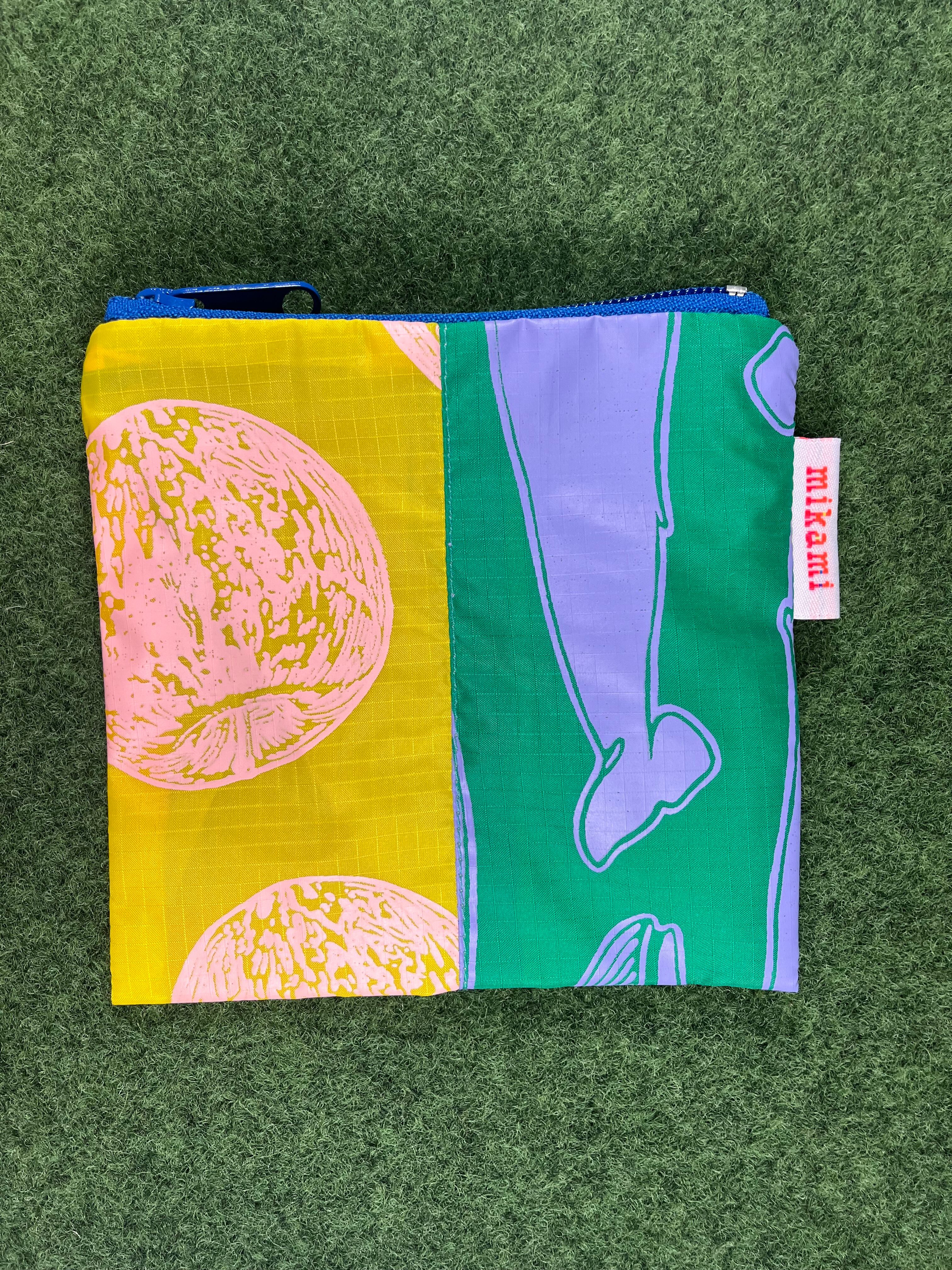 発色の良い派手な色使いが可愛らしいポーチ。リップストップのナイロンを使用しているので耐久性もよし。軽くて使い勝手の良さも◎。