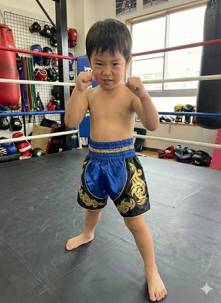 元気なブルーが目を引くムエタイパンツ。キッズサイズで動きやすく、ウエストは伸縮性のあるゴムバンドを使用しており、ムエタイの練習はもちろん、さまざまなスポーツシーンにぴったりです。高品質なポリエステル素材を採用しており、軽やかで耐久性も抜群です!