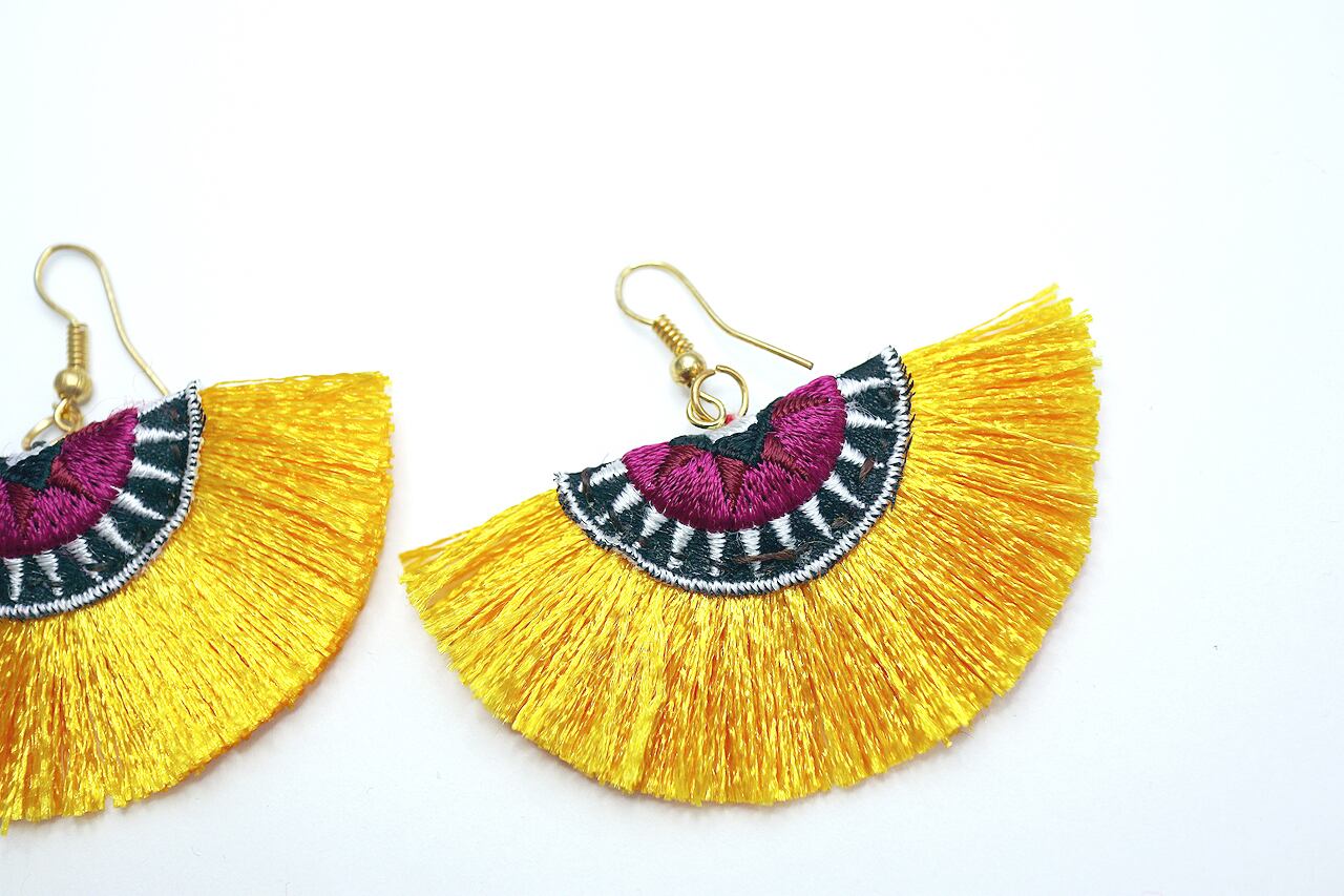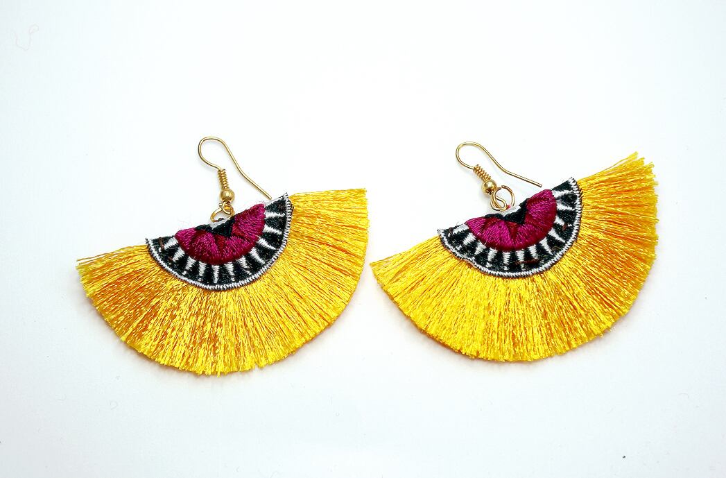 タイ・モン族定番デザインのタッセルピアス。ひらひらとインパクトあるデザインはどんな洋服にも負けない存在感で主役級におしゃれを演出します。シンプルな洋服にはエスニックな雰囲気を一瞬でプラスしてくれるのでいつものスタイルも華やかに。