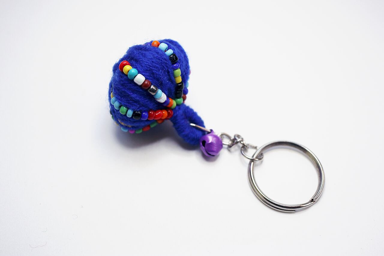 ビーズが編み込まれた丸いフォルムのチャーム。キーホルダーとしてぴったりなサイズ感で、バッグや財布にもちょっとしたアクセントとして付けても可愛いです。