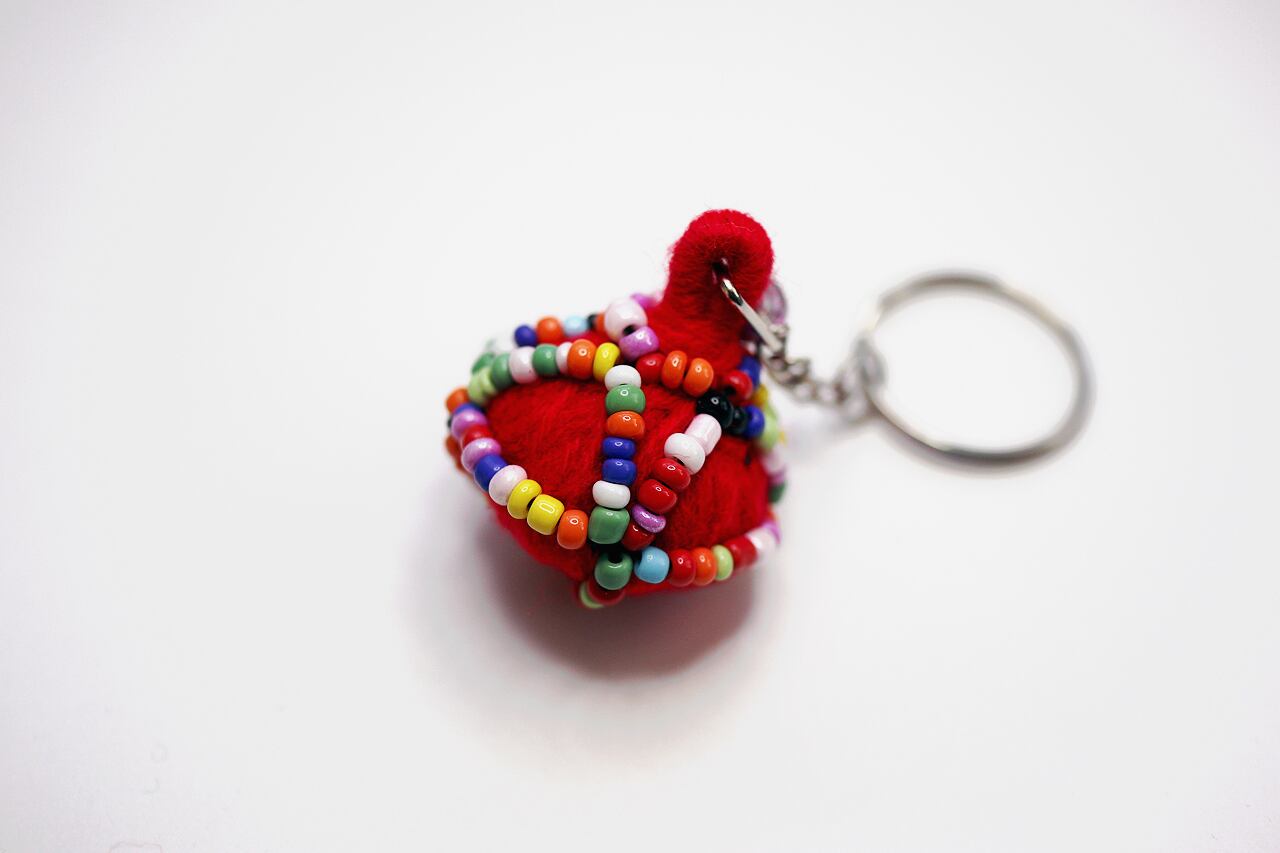 ビーズが編み込まれた丸いフォルムのチャーム。キーホルダーとしてぴったりなサイズ感で、バッグや財布にもちょっとしたアクセントとして付けても可愛いです。