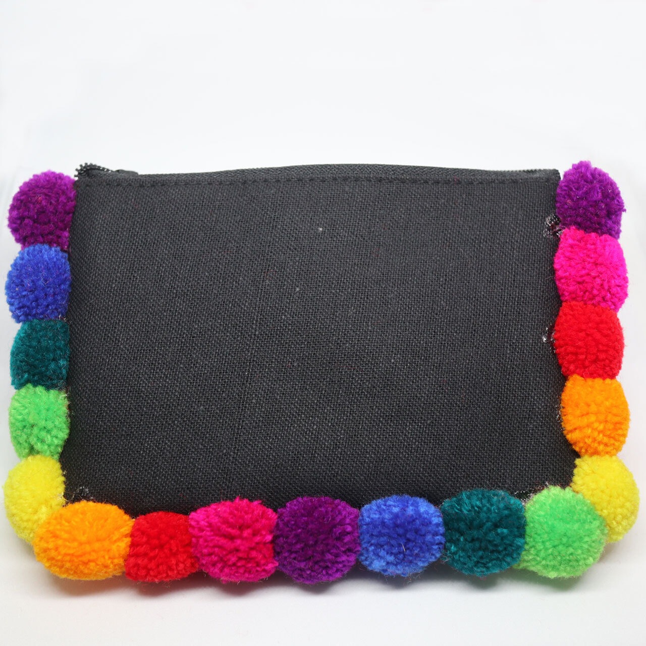 カラフルなポンポンがあしらわれた使い勝手の良い小さめポーチ。可愛い柄の刺繍が施され、リップクリームなどを入れておくにはぴったりのサイズ。