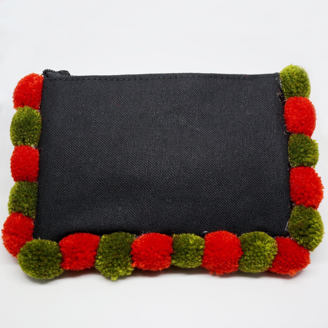 タイ モン族 ポンポン刺繍ポーチ ブラウン