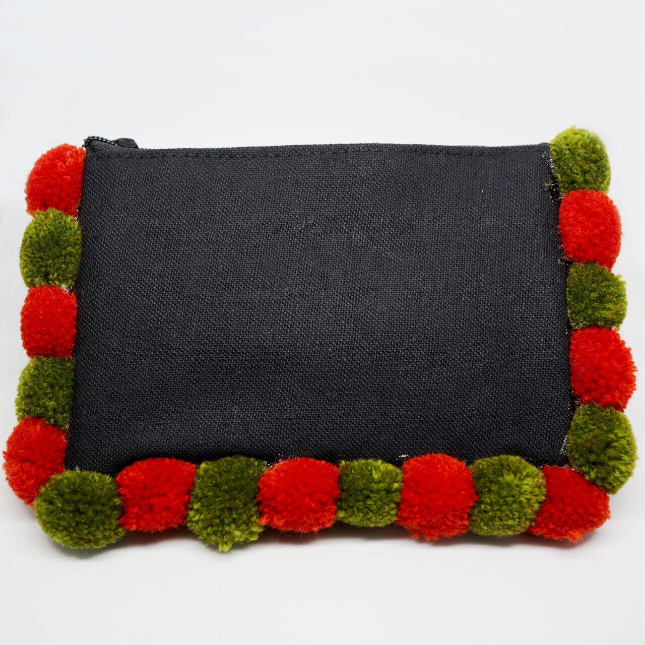 カラフルなポンポンがあしらわれた使い勝手の良い小さめポーチ。可愛い柄の刺繍が施され、リップクリームなどを入れておくにはぴったりのサイズ。